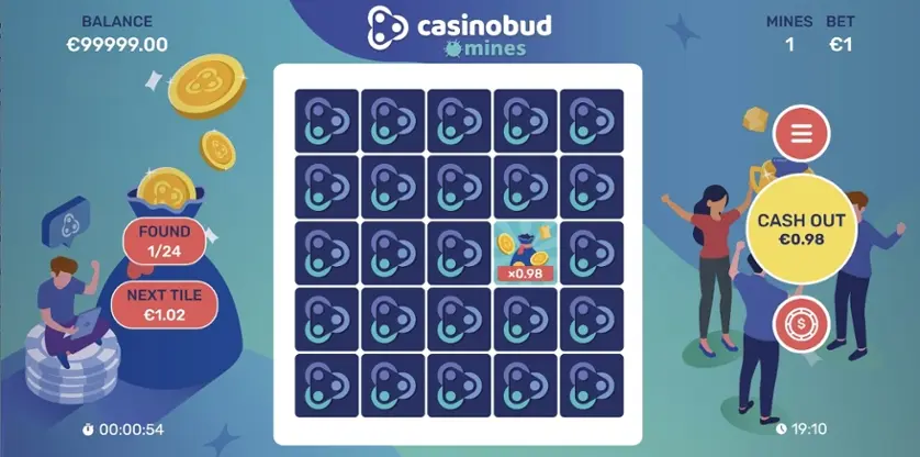 Prova Casinobud Mines online gratis in modalità demo, senza download o registrazione.