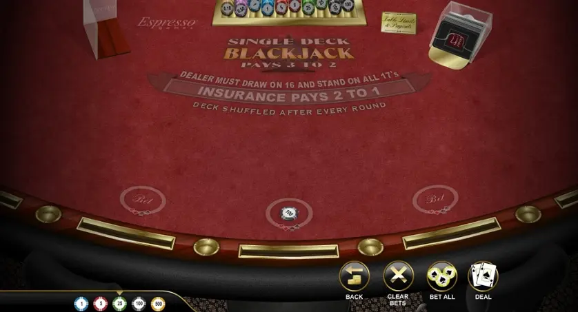 Prova Single Deck BJ (Espresso) online gratis in modalità demo, senza download o registrazione.