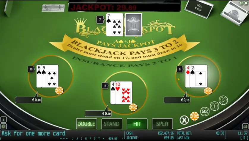 Black Jackpot è un gioco di blackjack di Worldmatch. Qui sopra puoi giocare gratis in modalità demo.