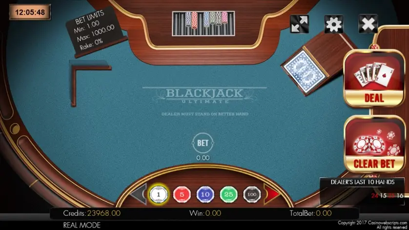 BlackJack Ultimate è un gioco di blackjack di Casino Web Scripts. Qui sopra puoi giocare gratis in modalità demo.