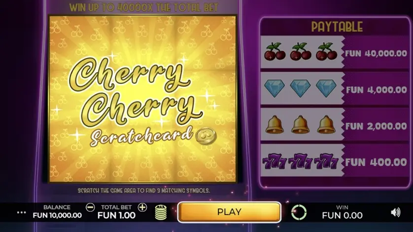 Parla di Cherry Cherry Scratchcard con altri giocatori: condividi la tua opinione o chiedi informazioni.