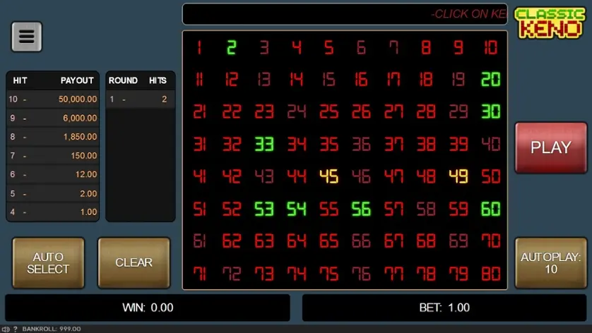 Prova Classic Keno online gratis in modalità demo, senza download o registrazione.