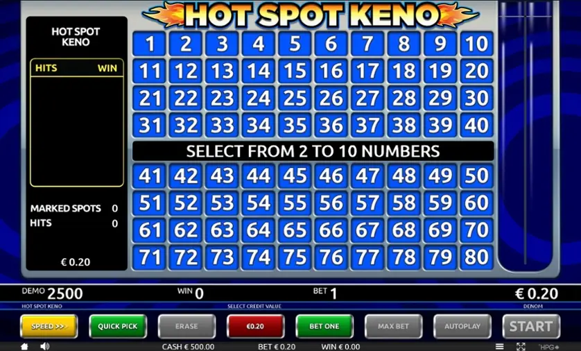 Prova Hot Spot Keno online gratis in modalità demo, senza download o registrazione.