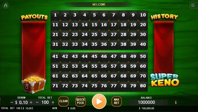 Prova Super Keno online gratis in modalità demo, senza download o registrazione.