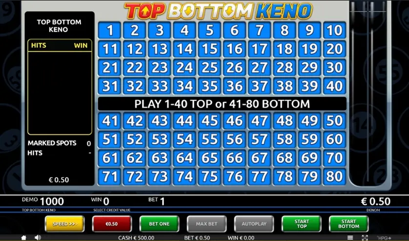 Prova Top Bottom Keno online gratis in modalità demo, senza download o registrazione.