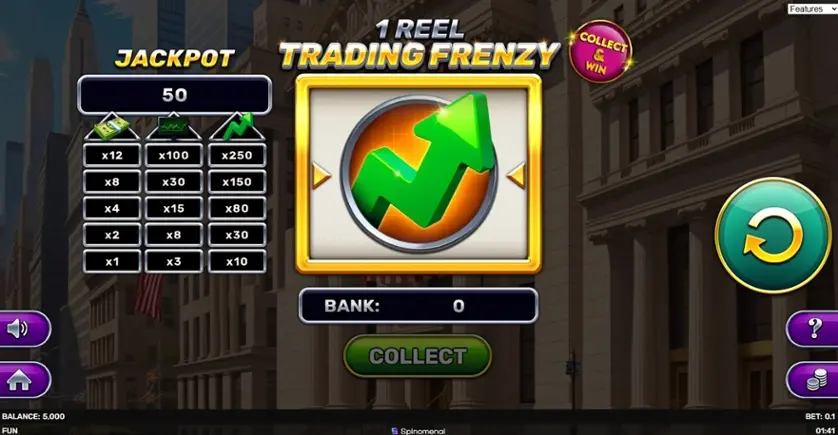 1 Reel - Trading Frenzy è una slot machine creata da Spinomenal. In base al numero di giocatori che la cercano, 1 Reel - Trading Frenzy non è una slot molto popolare. Questo, però, non significa necessariamente che sia una cattiva slot: provala e decidi tu, oppure esplora i giochi da casinò più popolari.
