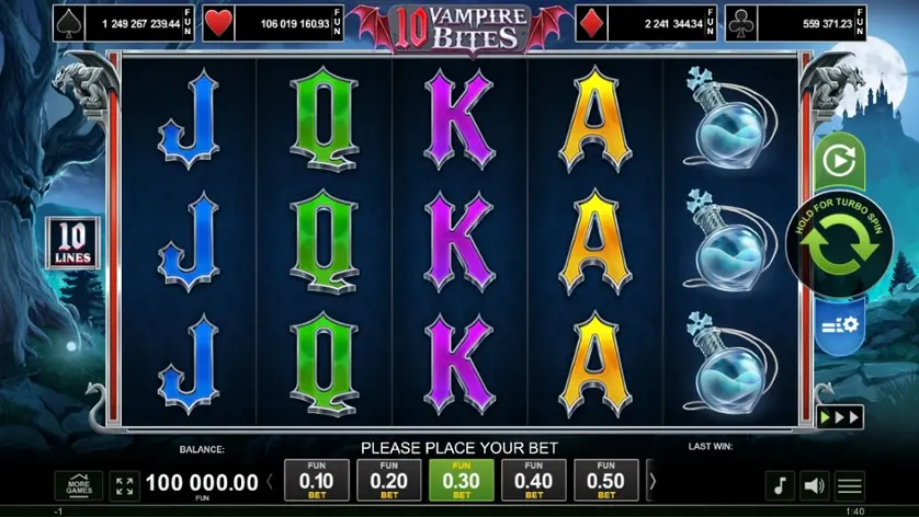 Prova la slot online 10 Vampire Bites gratis in modalità demo, senza download o registrazione.
