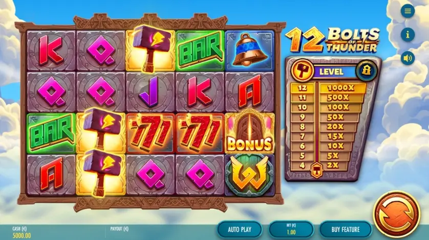 Prova la slot online 12 Bolts of Thunder gratis in modalità demo, senza download o registrazione.
