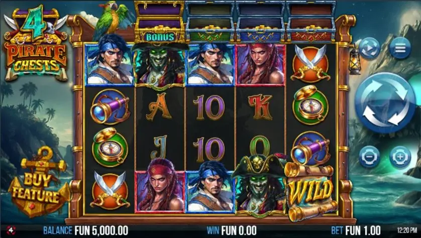 4 Pirate Chests di 4ThePlayer è una slot con cinque rulli e 1.024 modi di vincere. L’RTP del gioco è del 96,01%, appena superiore al valore medio, mentre la vincita massima è pari a 10.240 volte la puntata del giocatore.