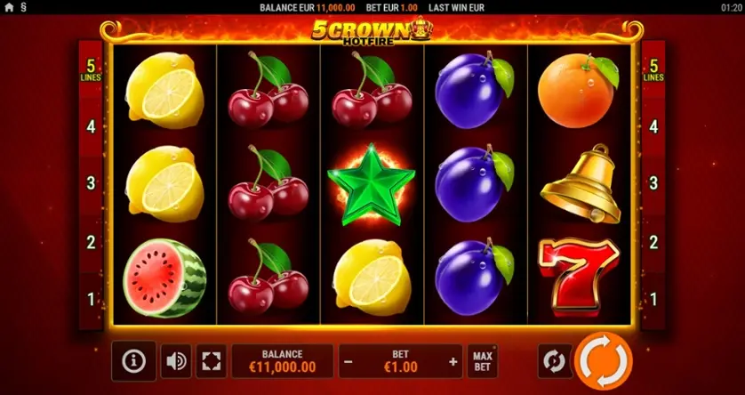 Prova la slot online 5 Crown Hotfire gratis in modalità demo, senza download o registrazione.