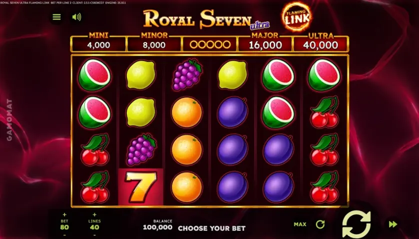 Prova la slot online 7 Royal Seven Ultra Flaming Link gratis in modalità demo, senza download o registrazione.