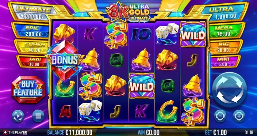 Prova la slot online 8K Ultra Gold Ultimate gratis in modalità demo, senza download o registrazione.