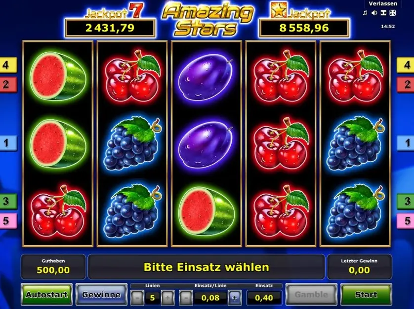 Amazing Stars è una slot machine creata da Novomatic. In base al numero di giocatori che la cercano, Amazing Stars non è una slot molto popolare. Questo, però, non significa necessariamente che sia una cattiva slot: provala e decidi tu, oppure esplora i giochi da casinò più popolari.