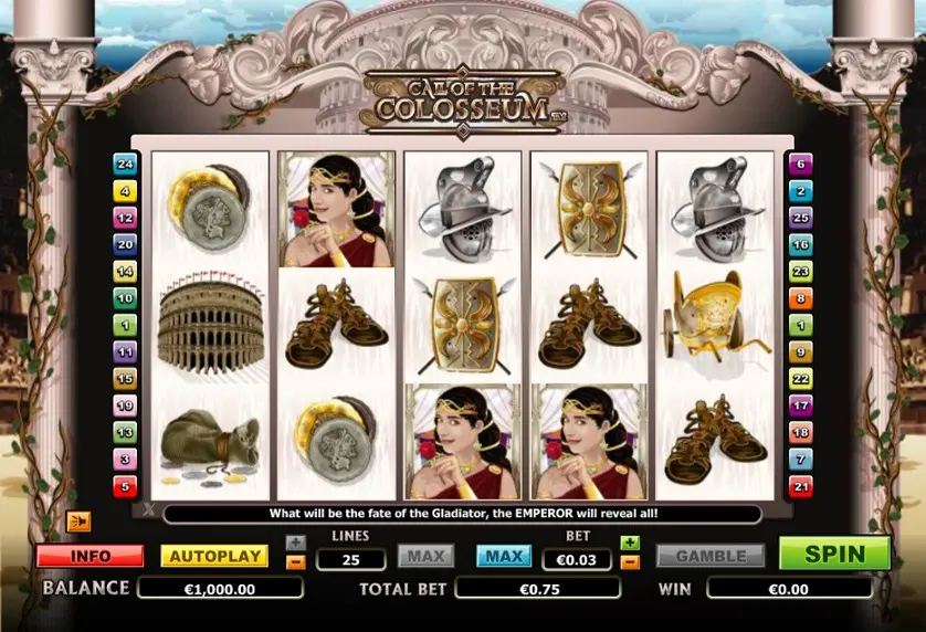 Call of the Colosseum è una slot machine creata da Nextgen Gaming. In base al numero di giocatori che la cercano, Call of the Colosseum non è una slot molto popolare. Questo, però, non significa necessariamente che sia una cattiva slot: provala e decidi tu, oppure esplora i giochi da casinò più popolari.