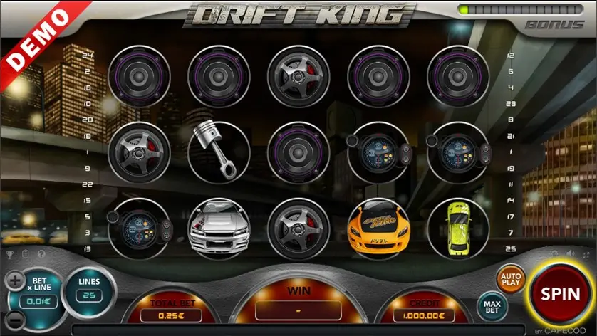 Prova la slot online Drift King gratis in modalità demo, senza download o registrazione.