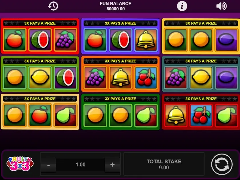 Prova la slot online Fruity 3x3 gratis in modalità demo, senza download o registrazione.