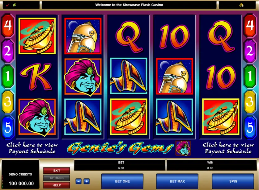 Prova la slot online Genie's Gems gratis in modalità demo, senza download o registrazione.