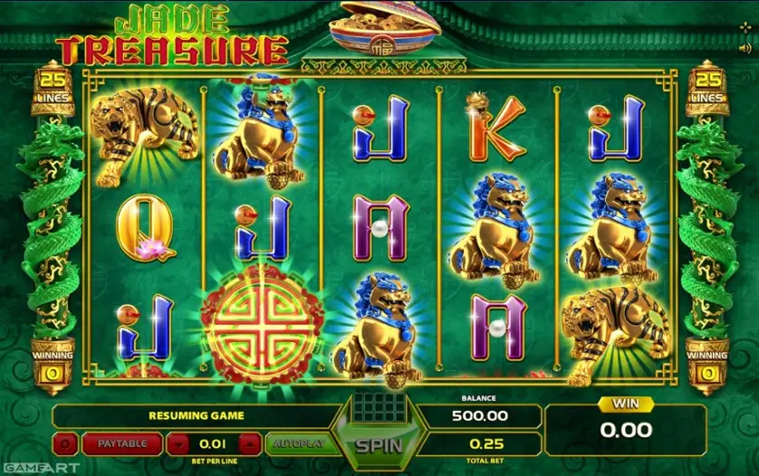 Jade Treasure è una slot machine creata da GameArt. In base al numero di giocatori che la cercano, Jade Treasure è una slot abbastanza popolare. Non è fra i titoli più conosciuti, ma ha catturato l'attenzione di alcuni giocatori di slot. Provala gratis per decidere se ti piace.