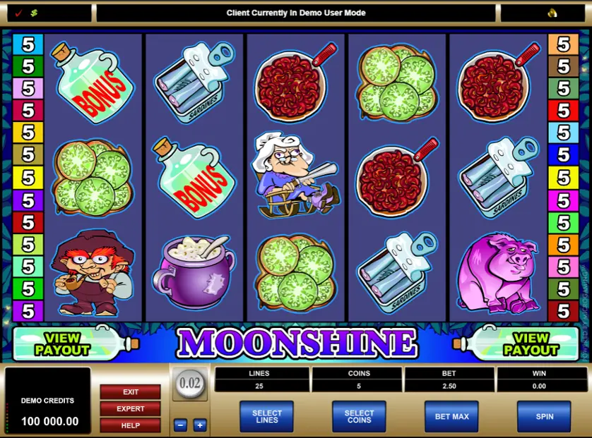 Prova la slot online Moonshine gratis in modalità demo, senza download o registrazione.