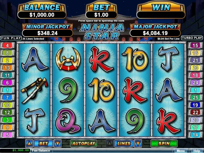 Ninja Star è una slot machine creata da Realtime Gaming. In base al numero di giocatori che la cercano, Ninja Star non è una slot molto popolare. Questo, però, non significa necessariamente che sia una cattiva slot: provala e decidi tu, oppure esplora i giochi da casinò più popolari.