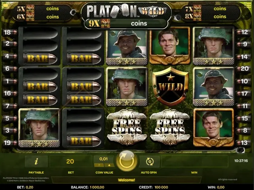Prova la slot online Platoon Wild gratis in modalità demo, senza download o registrazione.