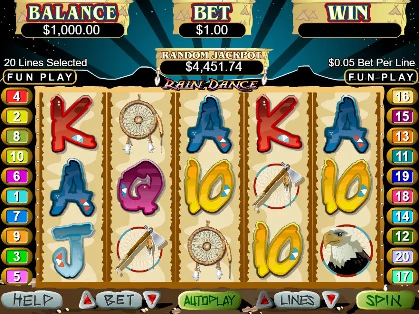 Rain Dance è una slot machine creata da Realtime Gaming. In base al numero di giocatori che la cercano, Rain Dance non è una slot molto popolare. Questo, però, non significa necessariamente che sia una cattiva slot: provala e decidi tu, oppure esplora i giochi da casinò più popolari.
