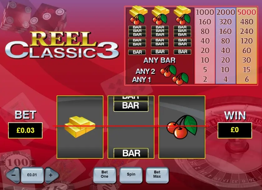 Prova la slot online Reel Classic 3 gratis in modalità demo, senza download o registrazione.