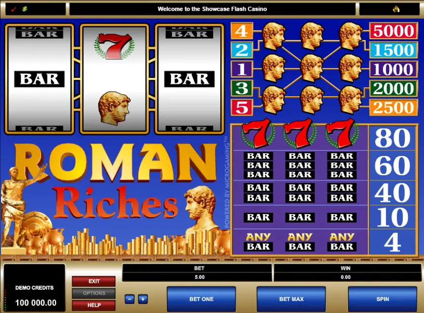Prova la slot online Roman Riches gratis in modalità demo, senza download o registrazione.