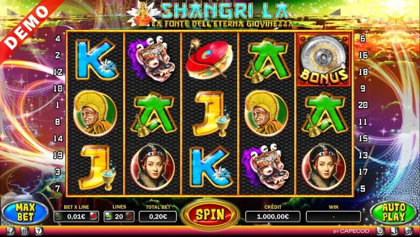 Shangri La è una slot machine creata da CAPECOD Gaming. In base al numero di giocatori che la cercano, Shangri La non è una slot molto popolare. Questo, però, non significa necessariamente che sia una cattiva slot: provala e decidi tu, oppure esplora i giochi da casinò più popolari.