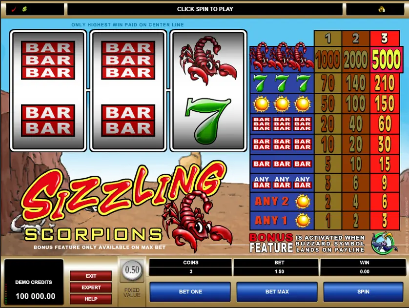 Prova la slot online Sizzling Scorpions gratis in modalità demo, senza download o registrazione.