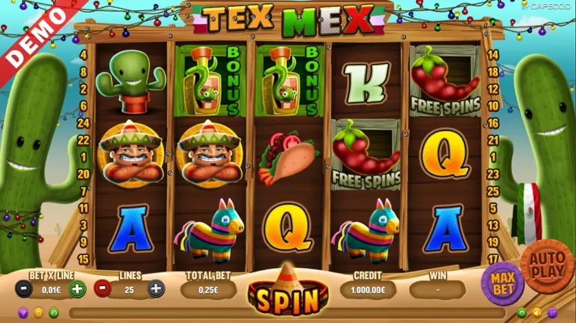 Tex Mex è una slot machine creata da CAPECOD Gaming. In base al numero di giocatori che la cercano, Tex Mex non è una slot molto popolare. Questo, però, non significa necessariamente che sia una cattiva slot: provala e decidi tu, oppure esplora i giochi da casinò più popolari.
