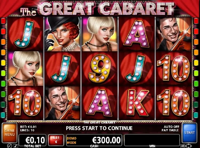 Prova la slot online The Great Cabaret gratis in modalità demo, senza download o registrazione.