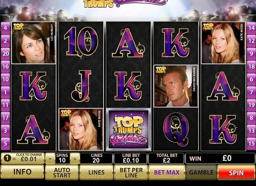 Prova la slot online Top Trumps Celebs gratis in modalità demo, senza download o registrazione.