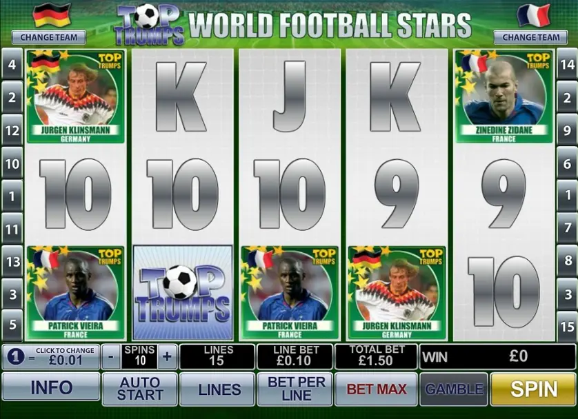 Prova la slot online Top Trumps World Football Stars gratis in modalità demo, senza download o registrazione.