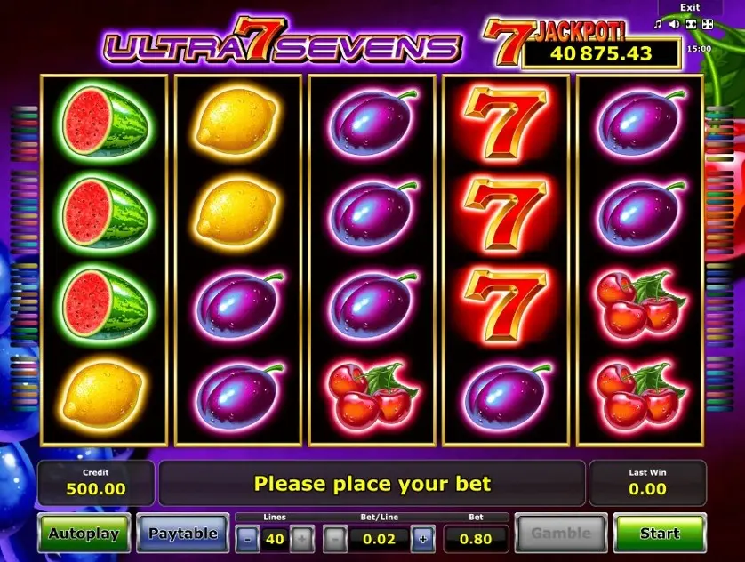 Ultra Sevens è una slot machine creata da Novomatic. In base al numero di giocatori che la cercano, Ultra Sevens non è una slot molto popolare. Questo, però, non significa necessariamente che sia una cattiva slot: provala e decidi tu, oppure esplora i giochi da casinò più popolari.