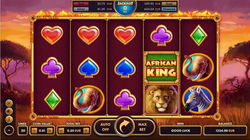 Prova la slot online African King gratis in modalità demo, senza download o registrazione.