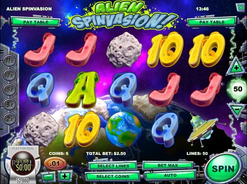 Prova la slot online Alien Spinvasion gratis in modalità demo, senza download o registrazione.