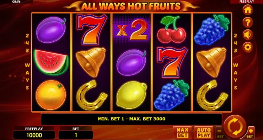 Prova la slot online All Ways Hot Fruits gratis in modalità demo, senza download o registrazione.