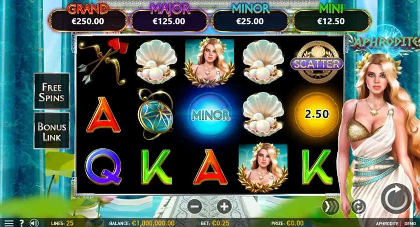 Prova la slot online Aphrodite gratis in modalità demo, senza download o registrazione.