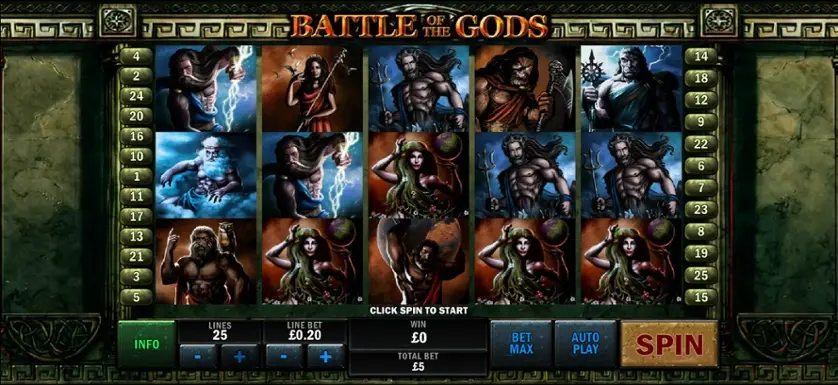 Battle of the Gods è una slot machine creata da Playtech. In base al numero di giocatori che la cercano, Battle of the Gods non è una slot molto popolare. Questo, però, non significa necessariamente che sia una cattiva slot: provala e decidi tu, oppure esplora i giochi da casinò più popolari.