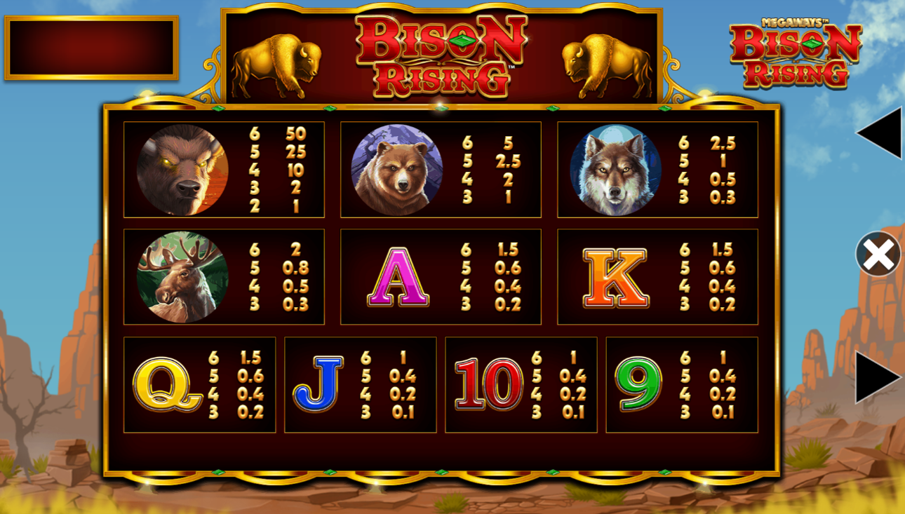 Con la sua piacevole resa grafica, le sue sonorità ricche di atmosfera e le sue nitide animazioni, Buffalo Rising Megaways fa una buona impressione a prima vista.