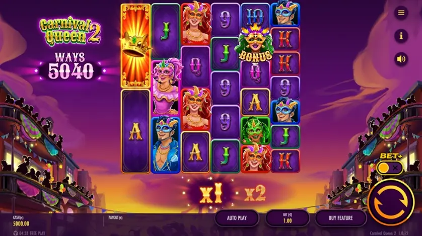 Prova la slot online Carnival Queen 2 gratis in modalità demo, senza download o registrazione.