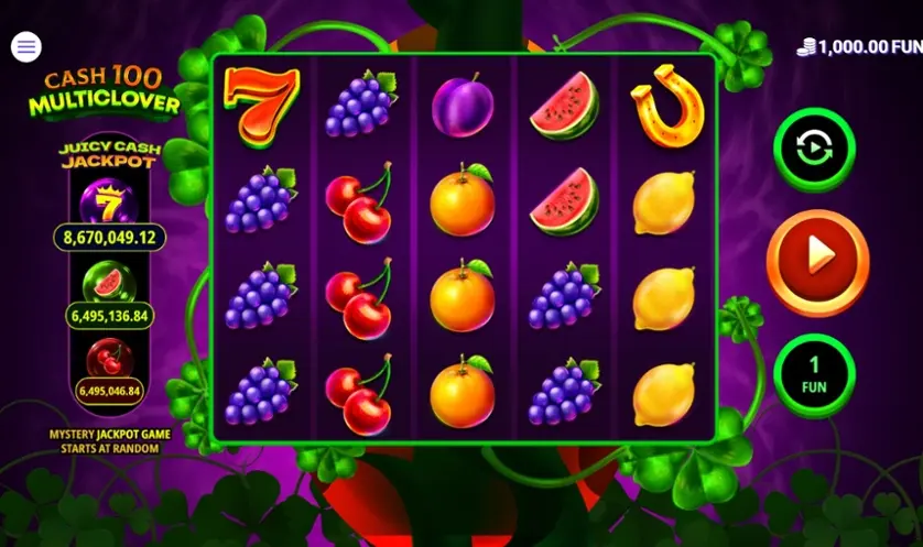 Prova la slot online Cash 100 Multiclover gratis in modalità demo, senza download o registrazione.