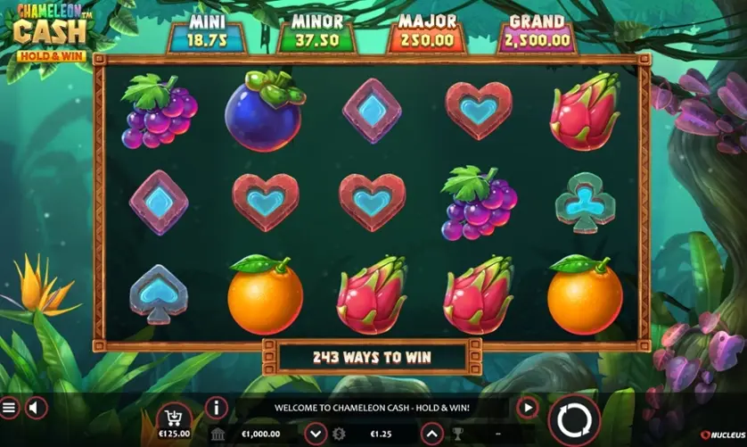 Chameleon Cash è una slot machine creata da Nucleus Gaming. In base al numero di giocatori che la cercano, Chameleon Cash non è una slot molto popolare. Questo, però, non significa necessariamente che sia una cattiva slot: provala e decidi tu, oppure esplora i giochi da casinò più popolari.