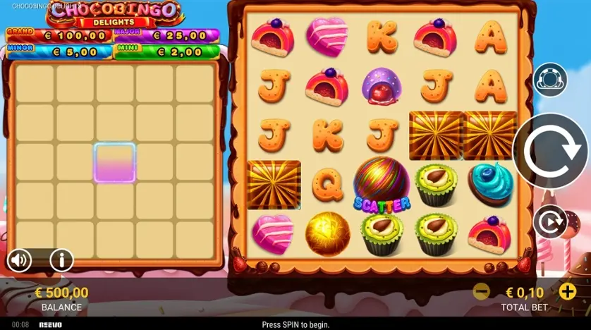 Prova la slot online Chocobingo Delights gratis in modalità demo, senza download o registrazione.