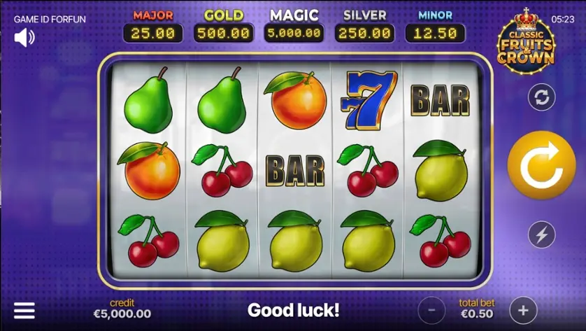 Prova la slot online Classic Fruits & Crown gratis in modalità demo, senza download o registrazione.