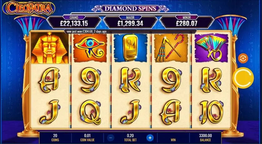 Prova la slot online Cleopatra: Diamond Spins gratis in modalità demo, senza download o registrazione.