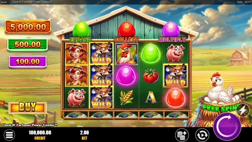Prova la slot online Cluck N' Fortunes Power Combo gratis in modalità demo, senza download o registrazione.