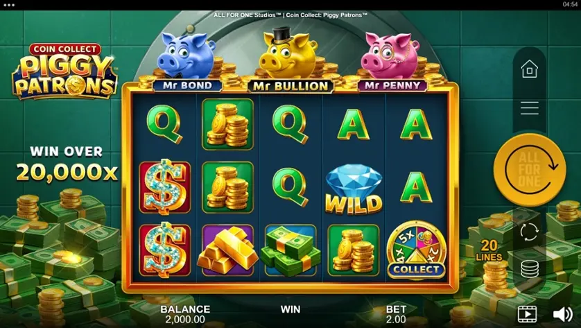 Coin Collect: Piggy Patrons è una slot machine creata da All For One Studios (ALL41). In base al numero di giocatori che la cercano, Coin Collect: Piggy Patrons non è una slot molto popolare. Questo, però, non significa necessariamente che sia una cattiva slot: provala e decidi tu, oppure esplora i giochi da casinò più popolari.