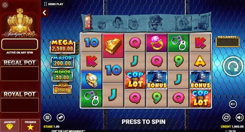 Prova la slot online Cop The Lot Megaways gratis in modalità demo, senza download o registrazione.